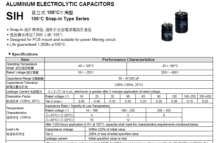 直立式105°C牛角型品 SIH系列