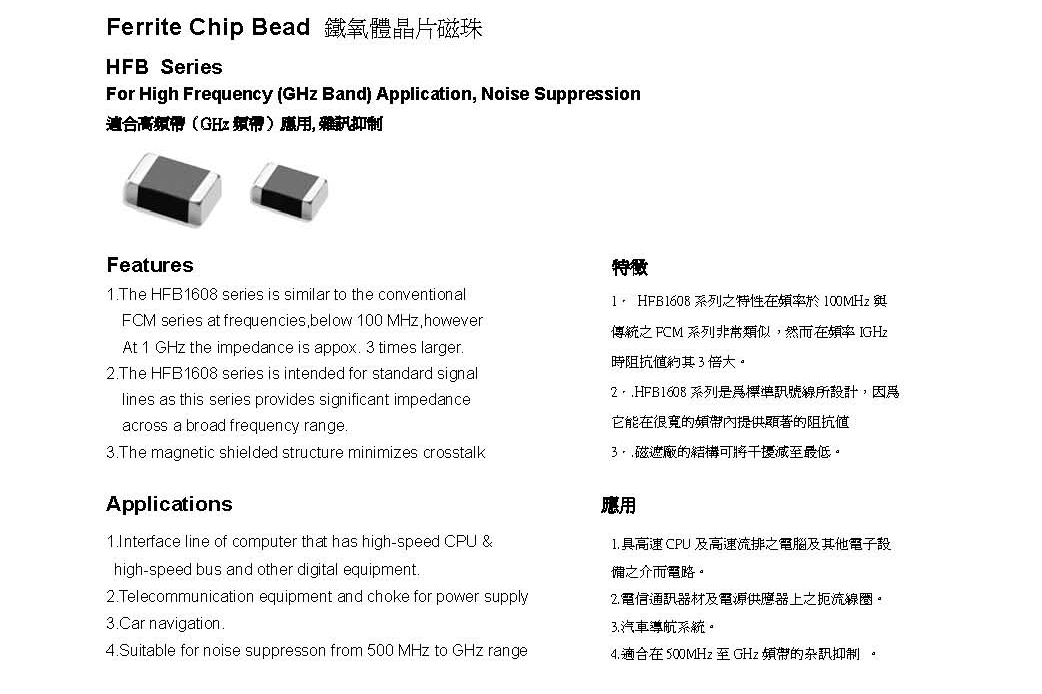 高頻&降噪鐵氧體貼片磁珠 HFB系列