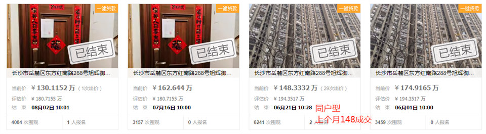 旭輝御府,27樓,134平,精裝修,南北通透,四房?jī)蓮d兩衛(wèi)。帶雙學(xué)位(小學(xué)岳麓區(qū)實(shí)驗(yàn)小學(xué)西校區(qū)+中學(xué)長(zhǎng)郡梅溪湖中學(xué))。地鐵商業(yè)也都挺近的。二拍130萬(wàn)底價(jià)成交,單價(jià)才9700元一平,這價(jià)格真的很香。小區(qū)最近一套118平的二手房成交價(jià)都到了140萬(wàn),小區(qū)上一套同戶型法拍房也拍到了148萬(wàn),實(shí)打?qū)嵉膿炻┝恕?/span>