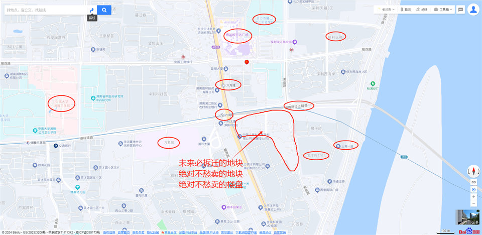 房子屬于老破大,但位置和配套極好,見(jiàn)(圖6、7)標(biāo)示,位置是雙地鐵交匯的六溝垅站,地鐵200米,旁邊大型商業(yè)有萬(wàn)達(dá)廣場(chǎng),華潤(rùn)萬(wàn)象城,醫(yī)療有湘雅三醫(yī)院,教育有濱江小學(xué),濱江中學(xué)等,而且到江邊也近。